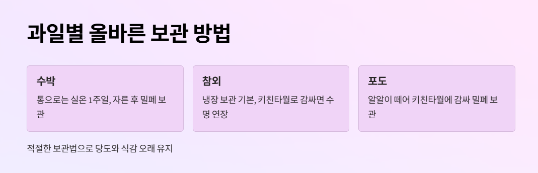 과일마다 적절한 보관법을 실천하면 당도와 식감을 오래 유지할 수 있어요. 특히 여름에는 냉장고 속 습도도 중요한 요소이니, 보관 용기와 상태를 신경 써야 해요.