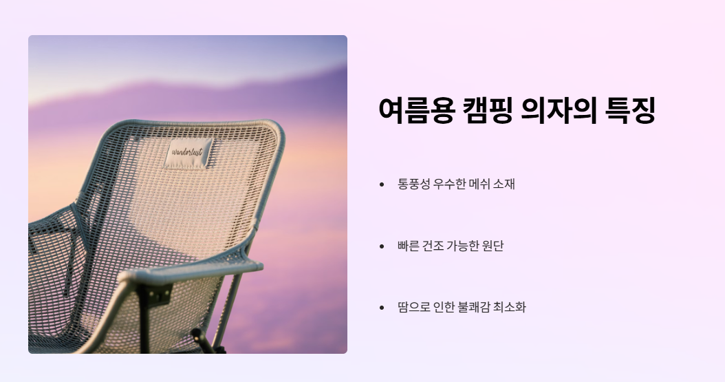 캠핑용 의자와 텐트 선택은 성공적인 여름 캠핑의 핵심이에요.