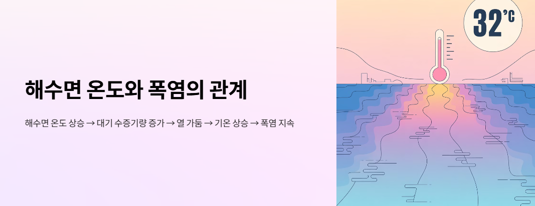 실제로 해수면 온도가 높은 해에는 폭염 일수가 급증한 사례가 많았어요.이는 단지 우연이 아니라, 해양과 대기의 밀접한 상호작용 때문이랍니다.
